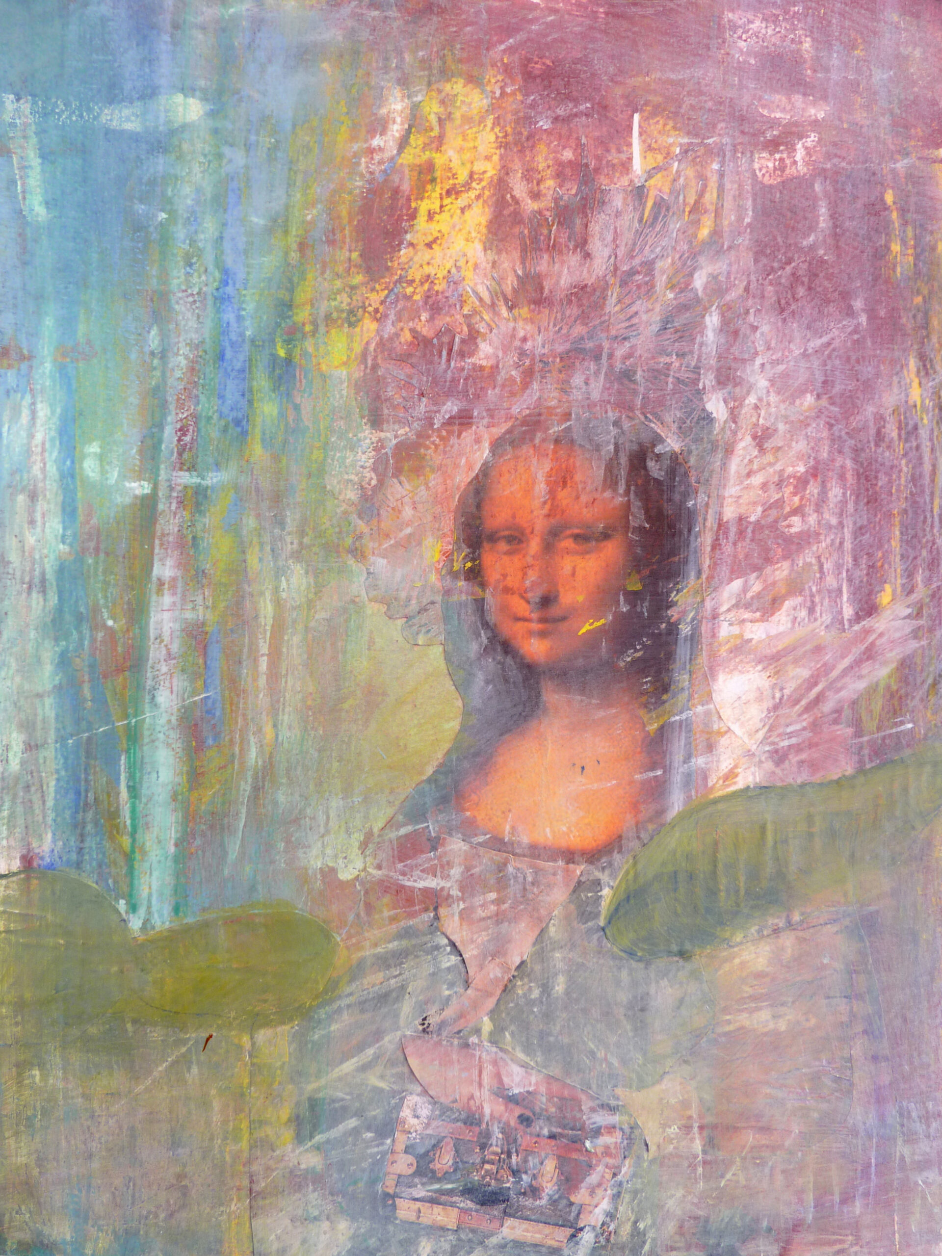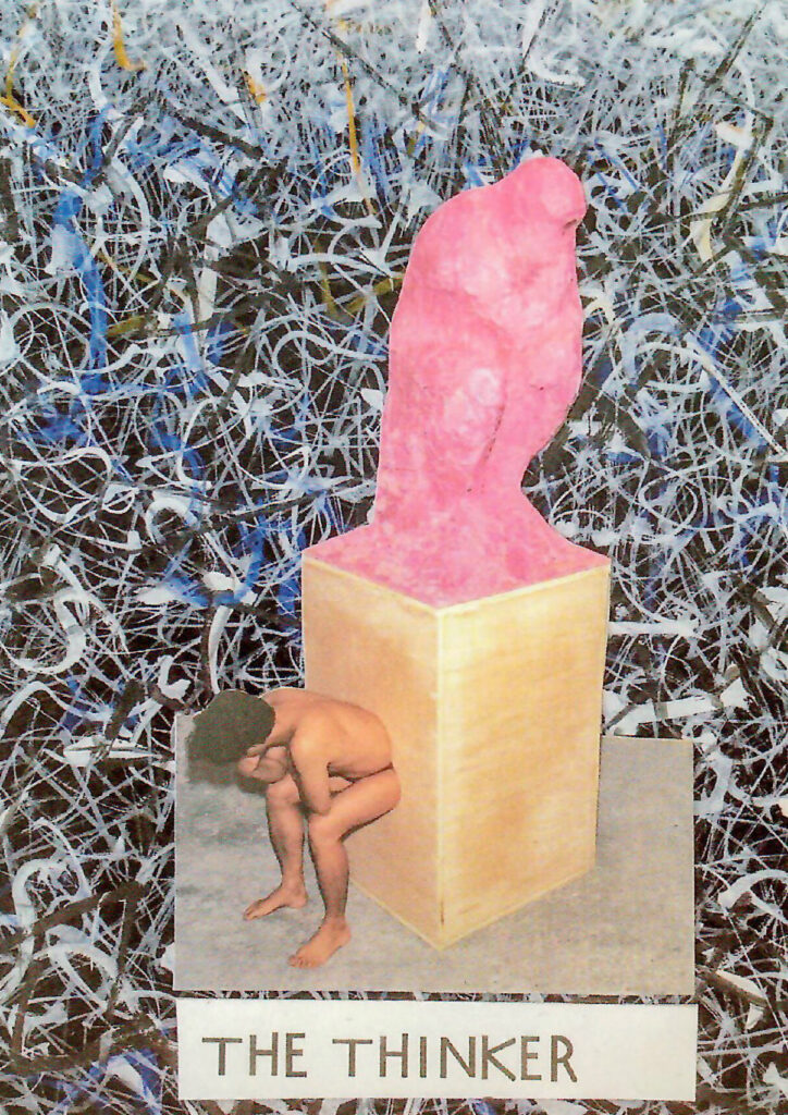 «Collage und Décollage» ist eine komplexere Art des Collagierens. Diese orientiert sich an bestimmtenThemen und ich arbeite deshalb meistens konzeptionell.